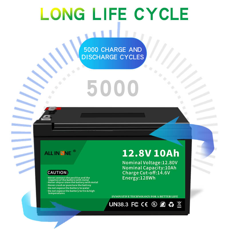 Tato 12,8V 10Ah LFP baterie může být perfektní náhradou za baterii AGM/GEL, ALLIN ONE také nabízí přizpůsobené baterie s různou kapacitou, rozměrem a funkcemi podle specifických požadavků zákazníka.