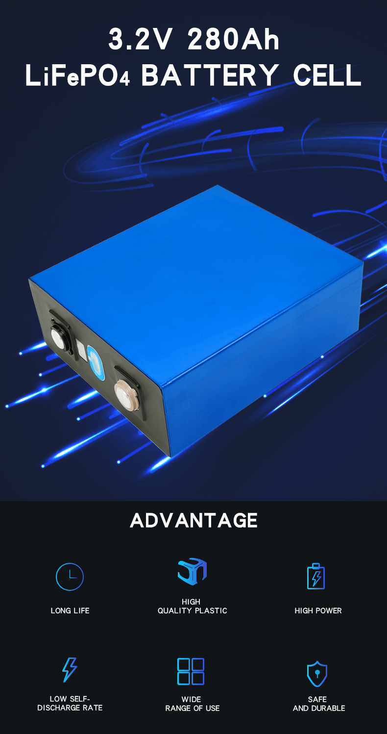 Tento bateriový článek LiFePO4 s certifikací UL 3,2 V 280 Ah má následující výhody: