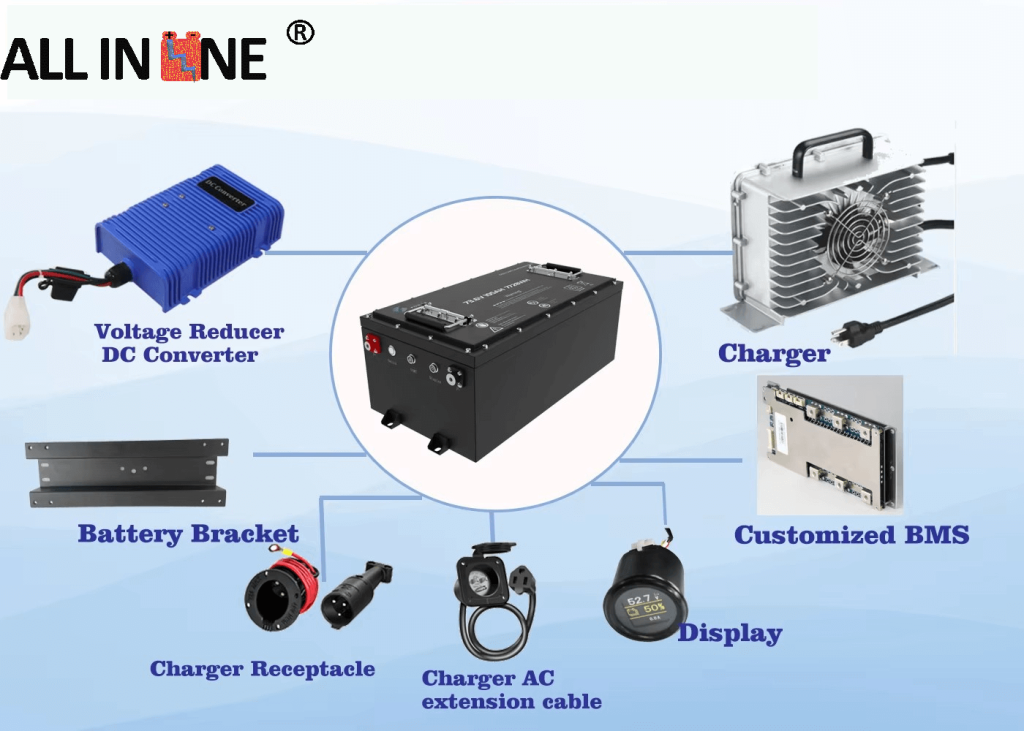 7) Můžeme poskytnout kompletní systémové řešení, jako je nabíječka, reduktor napětí, držák atd.