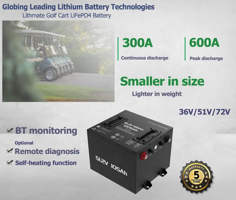 【Přejděte z olověných baterií ještě dnes】 Lithiová baterie golfového vozíku poskytuje vysoký výkon, ideální pro náročný terén a zlepšuje vaši golfovou hru, s dojezdem až 80 km na jedno nabití, takže se nemusíte bát o dojezd.