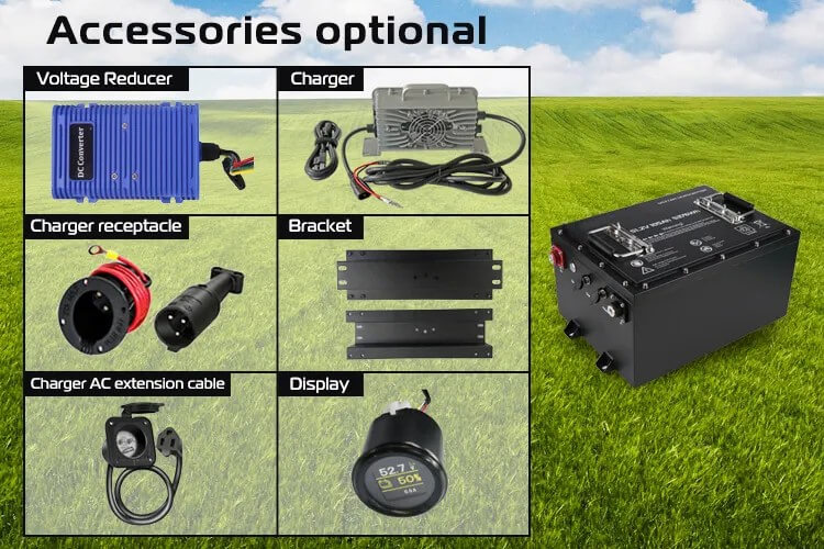 【Inteligentní LCD monitor baterie】The ALL IN ONE lithium golf cart battery offers robust acceleration and performance, enabling users to conquer challenging terrain and extend their golf range up to 50 miles on a single charge.