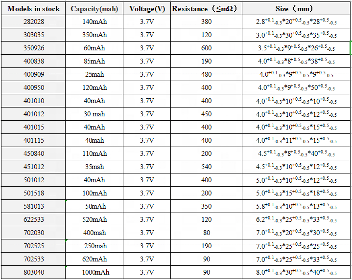 jméno výrobku | 581013 3,7 V 50 mAh polymerní lithiová baterie | Poznámka | |