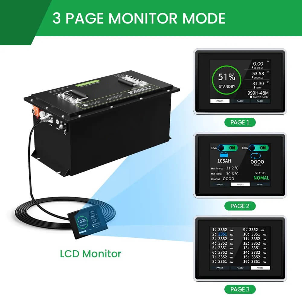 | LFP72-50 | 76,8 V | 50Ah | 3840 Wh | 470*330*150mm | ≈50kg |