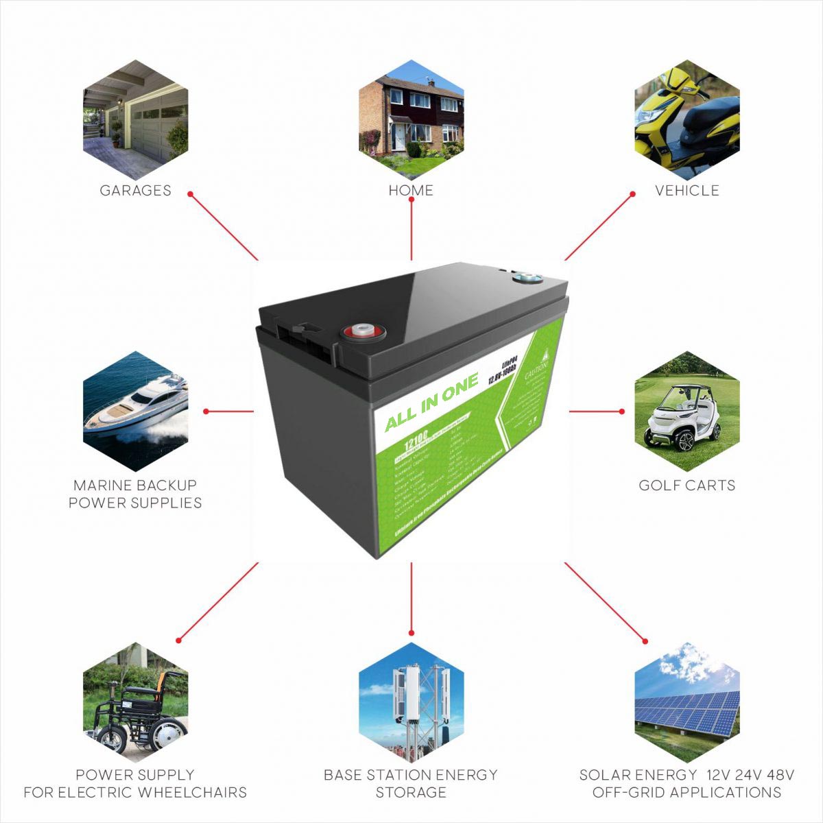 E-car, E-bus, Golf troller / car, E-bike, Scooter, RV, AGV, Marine, Tourist car, Caravan, Wheelchair, E-truck, E-sweeper, Floor cleaner, E-walker etc.